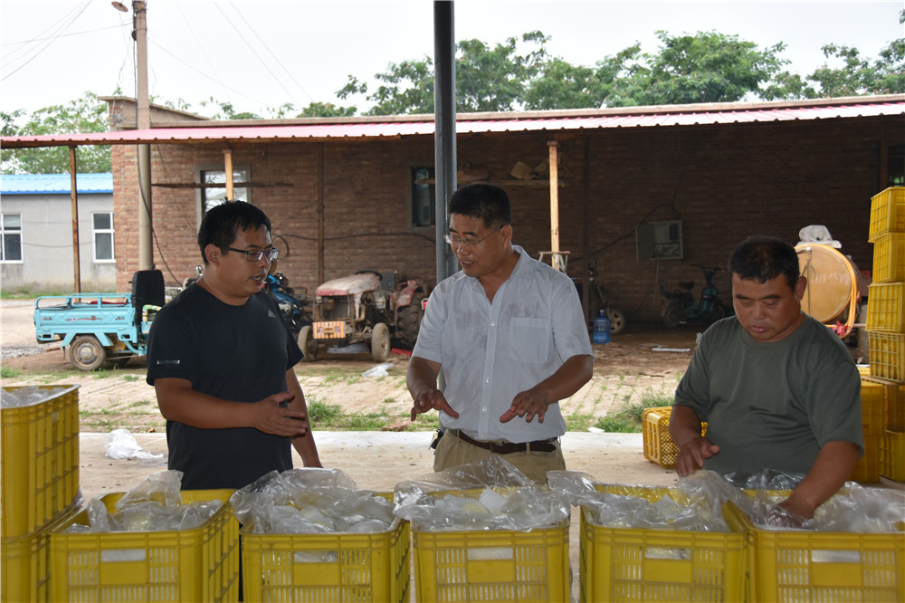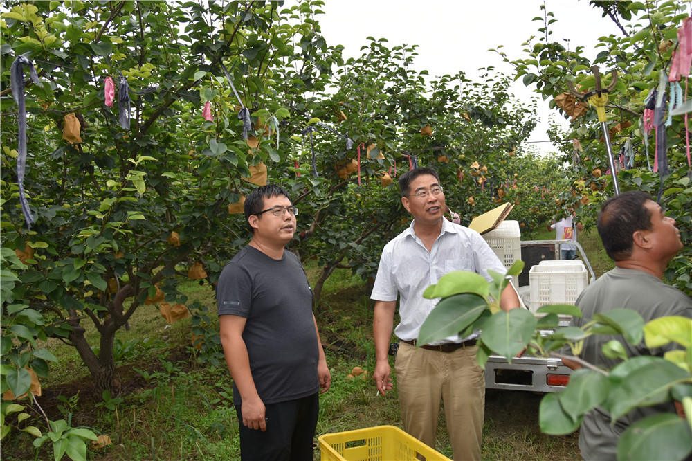 7月25日,正值黄冠梨分次采收的第二次,贮藏加工岗位专家程玉豆副研究员和沧廊站站长张立树副研究员到泊头东方果品有限公司崔桥梨园指导果实采收,程玉豆副研究员指出黄冠梨采摘的最佳期是其种子为黑色金边,此时果实品质以及对果实贮藏都具有非常好的表现,并对下一次采收提出了具体的要求。调查了解采收梨的市场价格和出口销售情况,并同梨园负责人武素贞经理就黄冠梨的采收贮藏、无损检测、冷链运输等有关内容进行了交流和沟通。第一次采摘已于7月15日完成,第三次采摘要在10天以后进行。