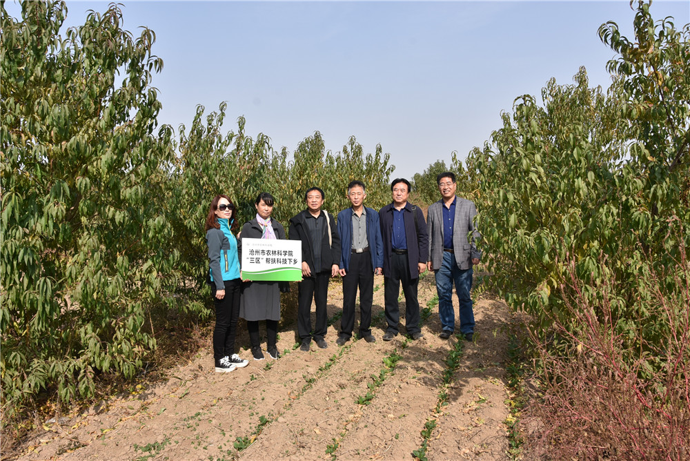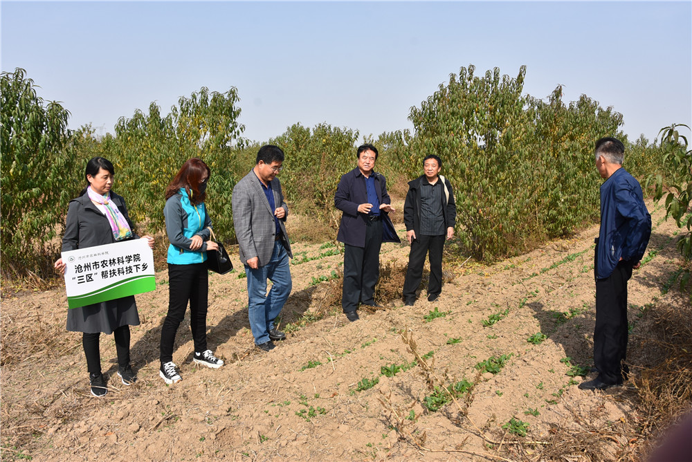 2019年10月22日e77乐彩林果所所长刘进余研究员,副所长张立树副研究员,李志欣副研究员陪同“三区”科技人才下乡服务项目主管单位市科技局农业信息卢书海主任到帮扶地点,盐山县青云镇西木村和盐山和兴种植专业合作社走访调研并技术指导。
