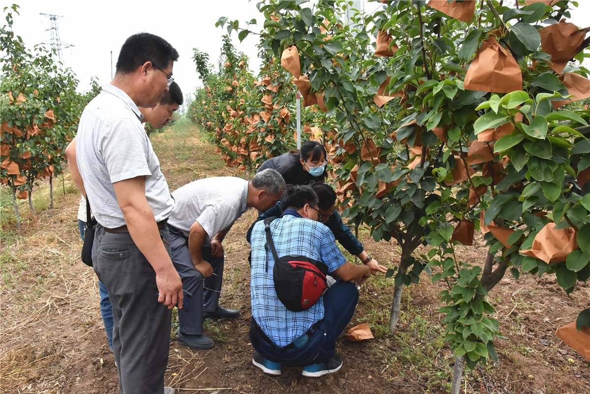 626日,国家苹果产业技术体系病虫害防控研究室团队成员、河北农业大学植保学院王树桐教授,河北省水果创新团队梨岗位专家许建锋副教授,梨岗团队成员张海霞博士,河北省水果创新团队沧廊站站长张立树研究员,沧廊站团队成员岳雷和张炳龙推广研究员到海兴农场有机梨生产基地和肃宁古塘湾农业有限公司唐河湾采摘园调研指导。海兴县农业农村局郭树文科长,海兴农场副厂长董海峰,肃宁古塘湾农业有限公司彭晓光经理等参加了有关活动。