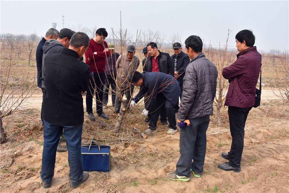 3月13日,沧州市林业技术推广站站长肖家良正高工,原黄骅市林业局森防站站长孙新正高工,e77乐彩林果研究所所长刘进余研究员,副所长张立树研究员,潘凤龙副教授到黄骅市友和种植专业合作社桃树种植基地进行现场技术培训和技术指导,同时到黄骅孔店就冬枣产业进行调研。