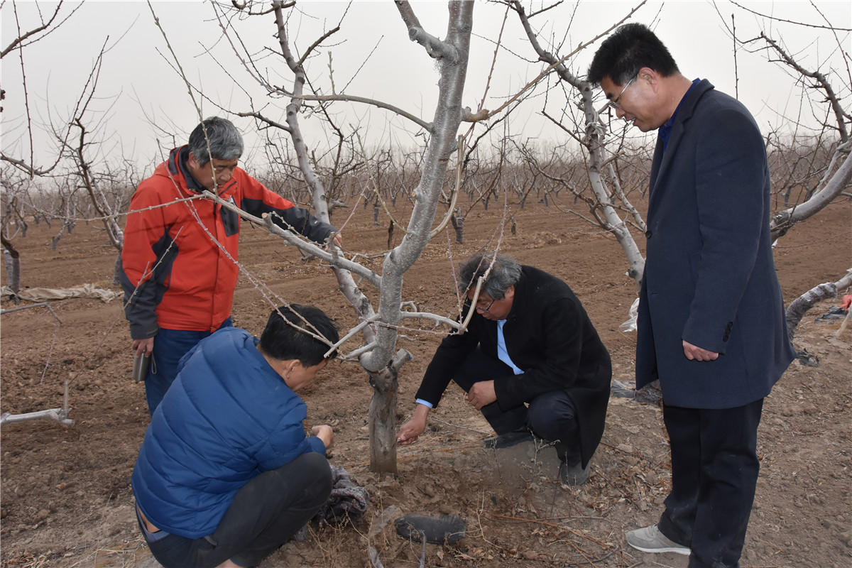 3月15日,我院林果所副所长、河北省水果创新团队沧廊站站长张立树研究员,岳雷助理研究员,河北省水果创新团队桃岗位专家、河北科技师范学院张立彬教授,河北省水果创新团队植保岗位专家、河北省植保所李建成研究员一同到任丘绿杰合作社调查指导。