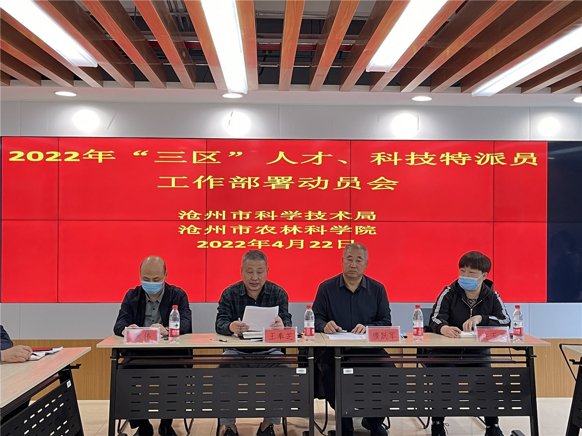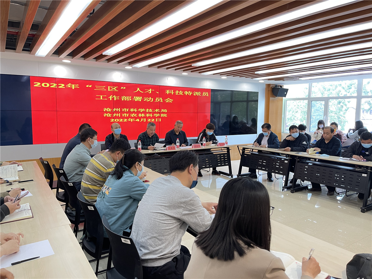 2022年4月22日,由沧州市科技局和e77乐彩联合组织,在农科院三农服务中心会议室召开了2022年“三区”科技人才、科技特派员工作部署动员会,会议由农科院副院长王奉芝主持,我院“三区”人才、科技特派员共40余人参加了会议。