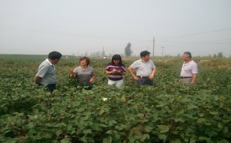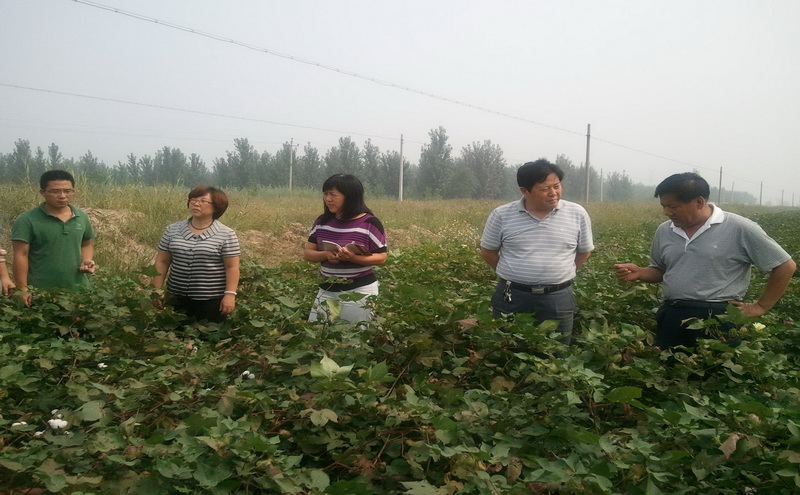2013年9月12日,岗位专家刘永平带领团队合作专家林永增陪同首席专家张香云先后到滨海盐碱地综合试验推广站和滨海高产优质综合试验推广站考察指导。在滨海盐碱地综合试验推广站站长潘秀芬及高产优质综合试验推广站站长张凤娟的指引下,分别考察了两站的试验及示范方的棉花生长情况。岗位专家刘永平及林永增研究员陪同首席专家进棉田,看长势、查铃数,对本地棉田地力及高密度种植模式下棉花生长状况、产量形成进行了深入探讨,首席专家张香云充分肯定了两个综合试验推广站的工作,她指出示范基地的棉花烂铃少,长势适中,希望在产业体系的支持下,产量和质量有新的突破,并提出了后期管理的指导意见。