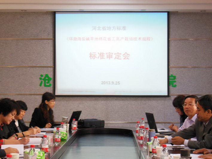 2013年9月25日,河北省质量技术监督局组织并邀请河北农业大学、沧州市农牧局等单位的相关专家,组成标准审定委员会,对沧州市农科院承担《环渤海盐碱旱地棉花省工高产栽培技术规程》项目进行了审定。审定会由河北省质量技术监督局标准处处长刘玉主持,项目起草组成员刘贞贞对标准编制过程进行了汇报。审定委员会在听取了标准编制工作情况的说明后,对标准逐章逐条进行了认真的审查和修改,经质疑答辩,审定委员会一致通过了该标准的审定。