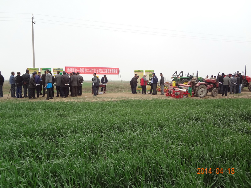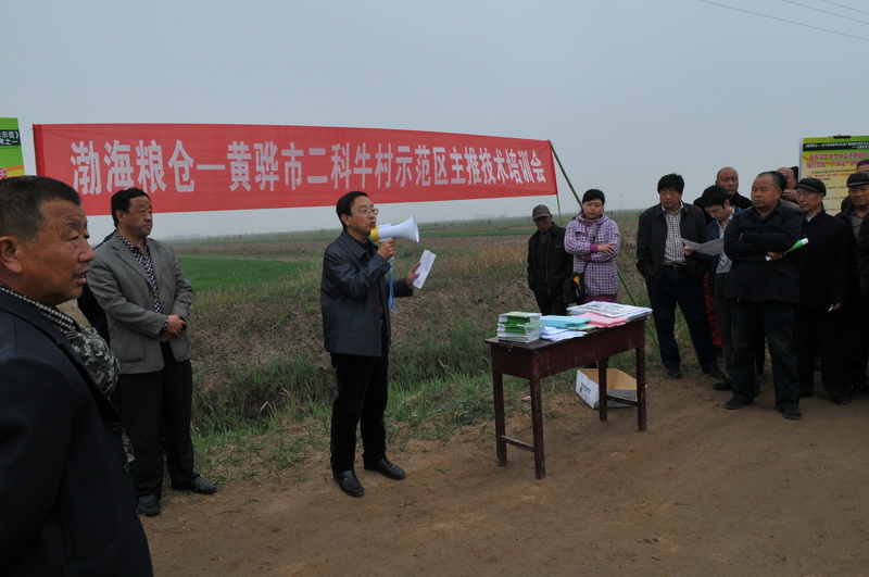 为加强渤海粮仓科技示范工程——黄骅示范区建设,进一步宣传渤海粮仓项目主推技术,提高农民使用新技术新品种的积极性,2014年4月18日,渤海粮仓课题承担单位e77乐彩、黄骅市农业局在黄骅示范区齐家务乡二科牛村举行大规模现场培训会。黄骅示范区县、乡、村各级农业技术人员、种植大户和农机手共200余人参加大会。
