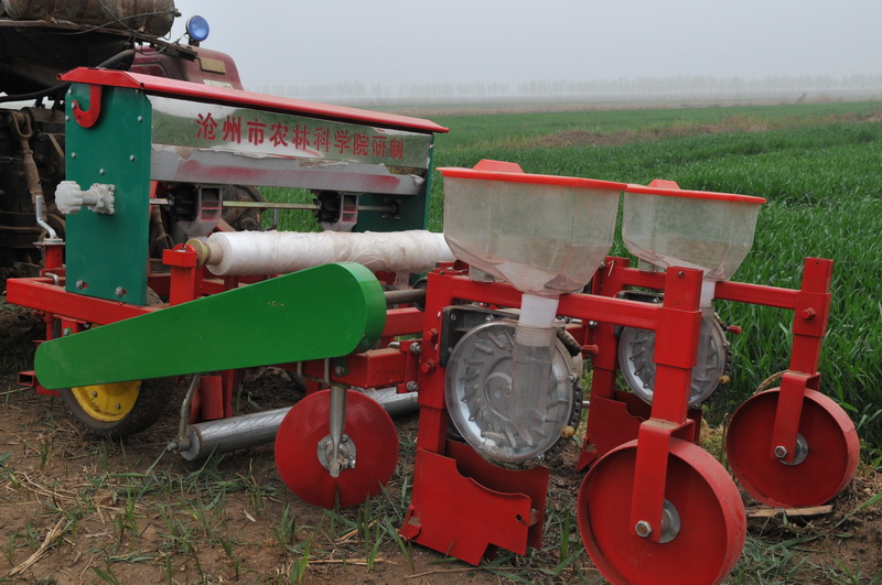 我院研制的春玉米起垄覆膜侧播播种机 |