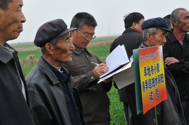 阎旭东研究员讲解小麦追施水溶肥试验 |