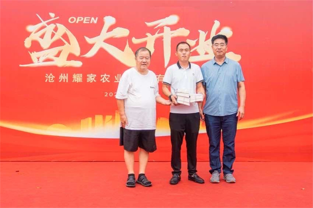 活动中,我院原林果所所长、沧州市农业新技术协会副会长刘进余研究员宣读了《关于批准沧州耀家农业科技有限公司为现代农业科普基地的决定》,并向耀家农业科技有限公司颁发现代农业科普基地牌匾。沧州市农业新技术协会副会长赵松山研究员,张立树研究员向沧州耀家农业科技有限公司代表赠送农业科普图书。