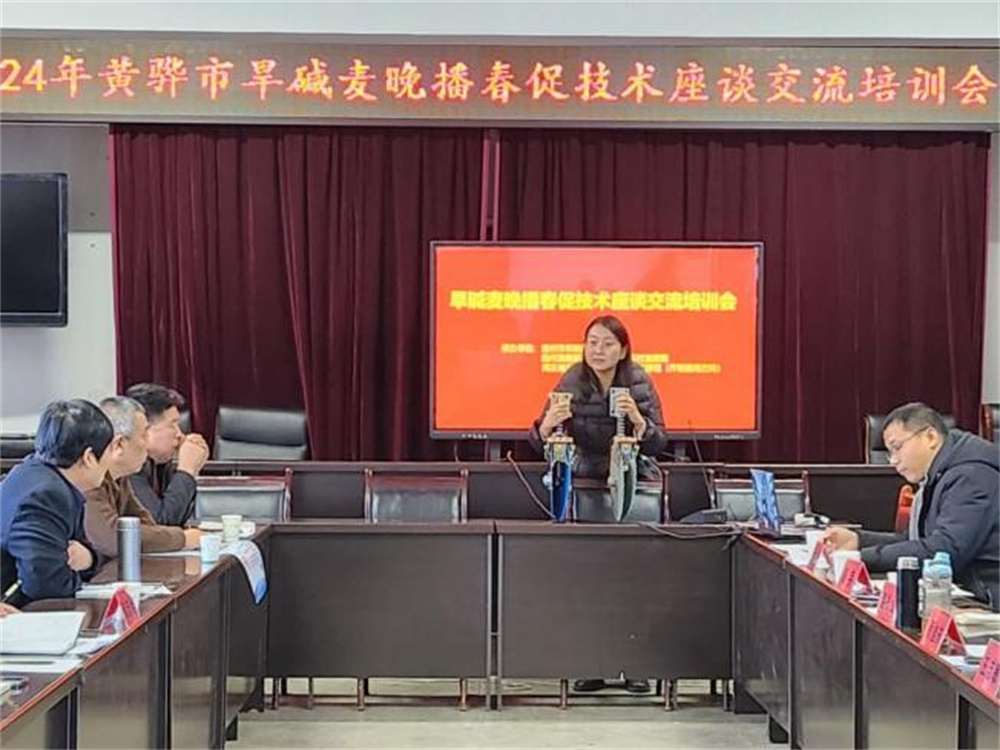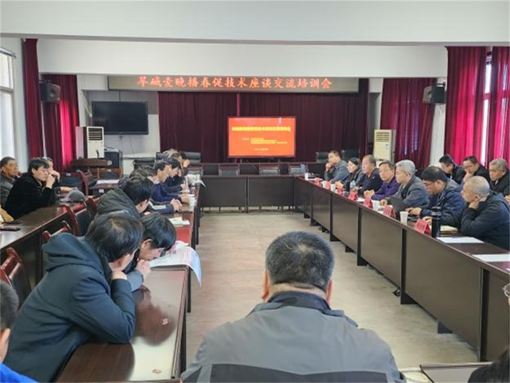 2024年2月26日,e77乐彩《黑龙港流域优质旱碱麦种植技术熟化及应用》项目组,联合渤海新区黄骅市农业农村发展局、河北省盐碱地综合利用科技支撑组在黄骅市农业农村局召开旱碱麦晚播春促技术座谈交流培训会。