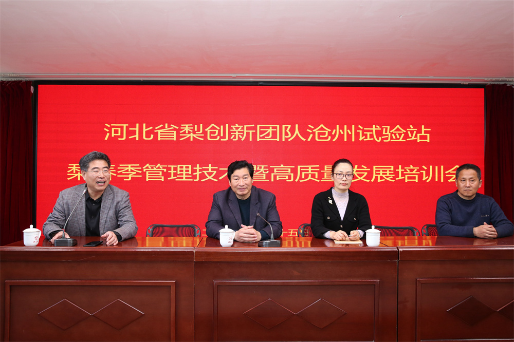 为促进梨产业绿色高质量发展,进一步提升梨农管理技术水平,同时紧紧围绕农业结构供给侧改革和乡村振兴战略,贯彻落实党中央关于盐碱地综合利用的重大决策部署,推进农业结构调整,积极引导规模化生产,加快产业化步伐,做好盐碱地特色农业大文章。我院果树所暨河北省梨创新团队沧州综合试验站于3月14-15日在泊头举办梨树春季管理技术暨高质量发展培训会。