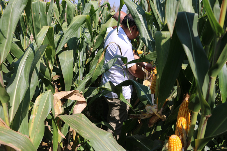 2016年9月8-9日,沧州市开发办、财政局组织有关专家,对我院承担的孟村县《玉米品种郑单958(P型)春夏播高产种植技术示范推广》、泊头市《玉米品种郑单958(P型)推广及配套栽培技术》、沧县《玉米新品种伟科702推广及配套栽培技术示范》农业综合开发土地治理科技推广项目进行了田间检测。专家组首先听取了项目主持人阎旭东研究员和赵忠祥副研究员的进展汇报,全面考察了孟村县孟村镇前街及北街村示范区、泊头市文庙镇尹庄及尹圈村示范区、沧县张官屯乡广宁侯及舍女寺村示范区内玉米种植情况,对各中心示范区进行了实地检测。检测采用五点检测法,分别测定亩穗数、穗粒数,计算理论亩产量,最后按85折计算实际产量。