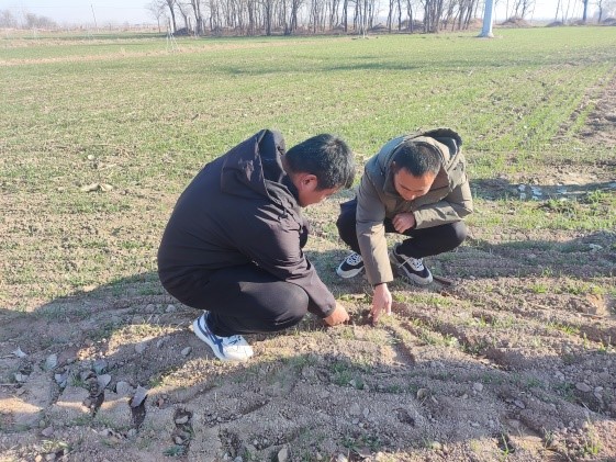 12月5日上午,应献县农业局邀请,我院国家小麦产业技术体系沧州综合试验站团队成员、作物遗传育种研究所副所长王伟伟和于亮研究员一起到献县临河乡石疃村雷雷家庭农场开展技术培训和田间技术服务,在田间向种植大户讲解了关于产量三要素以及田间管理注意事项,随后到麦田察看小麦苗情,该地块种植小麦品种石农086,由于播种时间在10月30日,加上播种深度偏深,麦苗没有分蘖,给出了及时浇越冬水,以踏实土壤,增强小麦的抗寒性的建议。本次培训种植大户、合作社成员和农民共计25人参加,在会上发放了小麦一喷三防技术明白纸、农业技术汇编等资料共计30份。