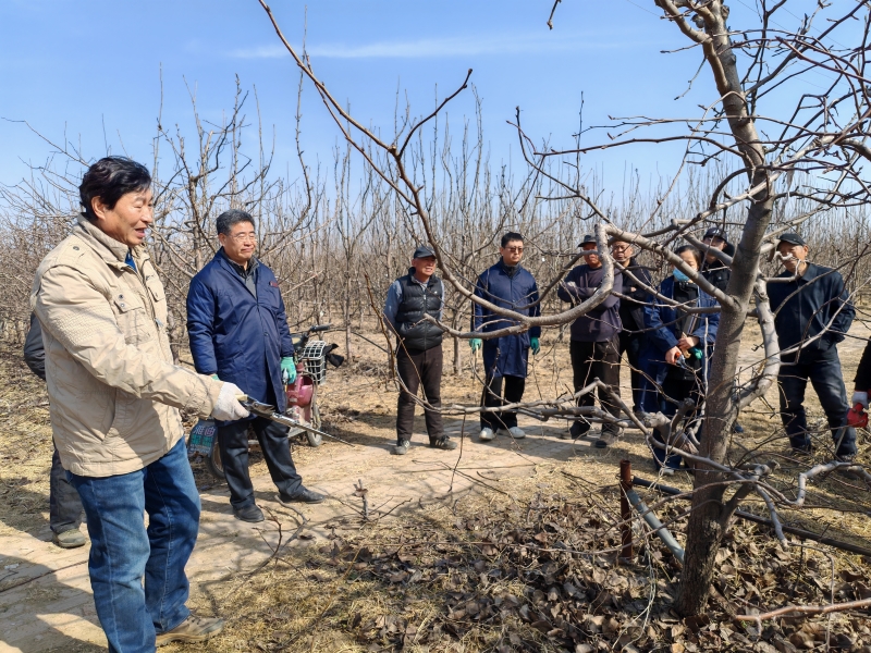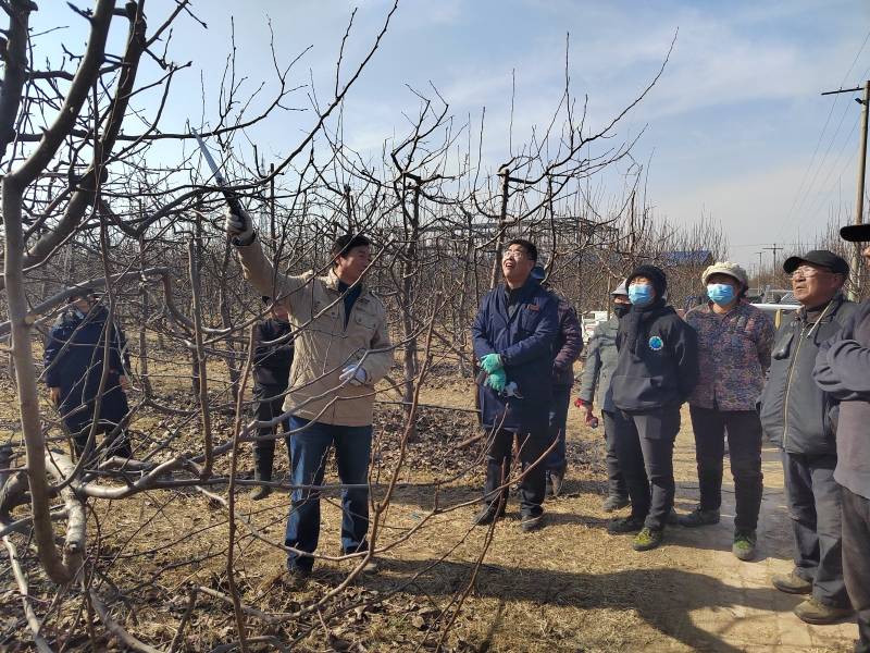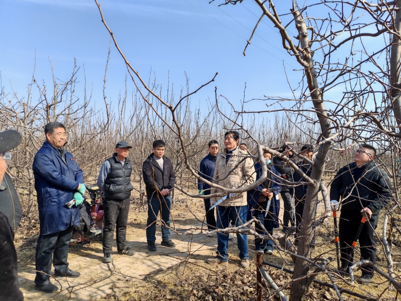 2月14日,我院果树研究所暨河北省梨创新团队沧州综合试验推广站,与河北农业大学、河北省梨创新团队石家庄综合试验推广站联合在孟村冀梨农民专业合作社举办果树修剪研讨和现场技术培训会。河北省现代农业产业技术体系梨创新团队首席专家、河北农业大学张玉星教授,河北农业大学马辉副教授,石家庄综合试验推广站站长、河北省林业与草原科学研究院赵京献正高级工程师,e77乐彩果树所所长、沧州综合试验推广站站长张立树,各团队有关成员和果树修剪技术员20余人参加了此次活动,沧州市农业农村局农业技术推广站站长潘秀芬参加有关活动。
