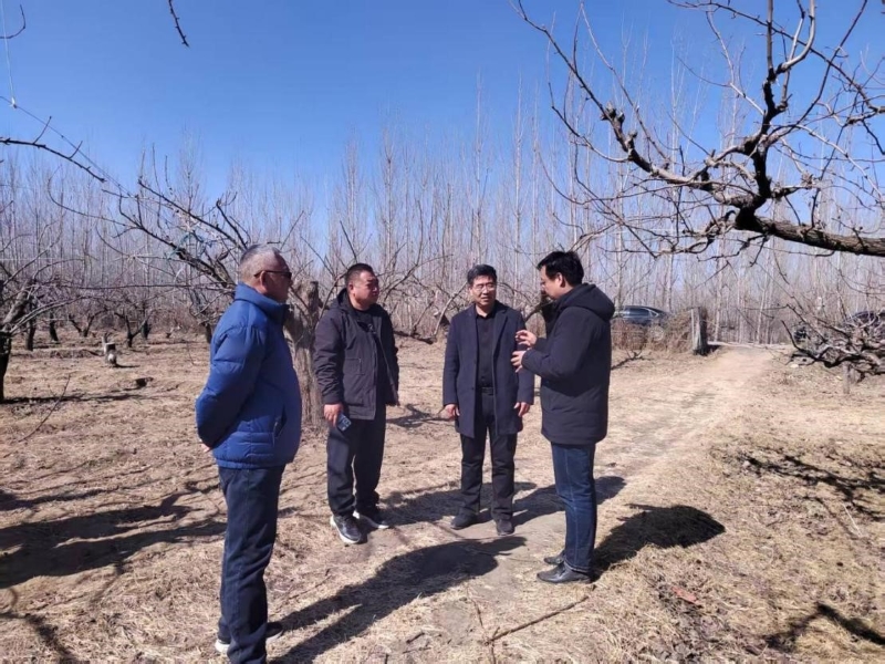 2025年2月25日上午,我院果树研究所所长、河北省现代农业产业技术体系梨创新团队沧州综合试验推广站站长张立树研究员,团队成员芮松青副研究员、朱晴晴助理研究员赴保定曲阳河北鑫丰果品基地,就低效老龄梨园宜机化改造技术考察调研学习。基地规模近1000亩,原品种为鸭梨,60余年树龄、效益差,于2021年、2022年高接换优成秋月、红香酥等品种。采用多主枝改接,双芽双头切腹接和单芽包头接等方式,改接后第三年产量即可观,模式可供借鉴推广。由河北省现代农业产业技术体系梨创新团队梨园改造升级岗位专家赵书岗副教授撰写的“老龄低效梨园综合改造技术”2025年列为河北省农业(园艺)主推技术。河北省现代农业产业技术体系梨创新团队梨园改造升级岗位专家赵书岗副教授,基地负责人陈峰一同参加。