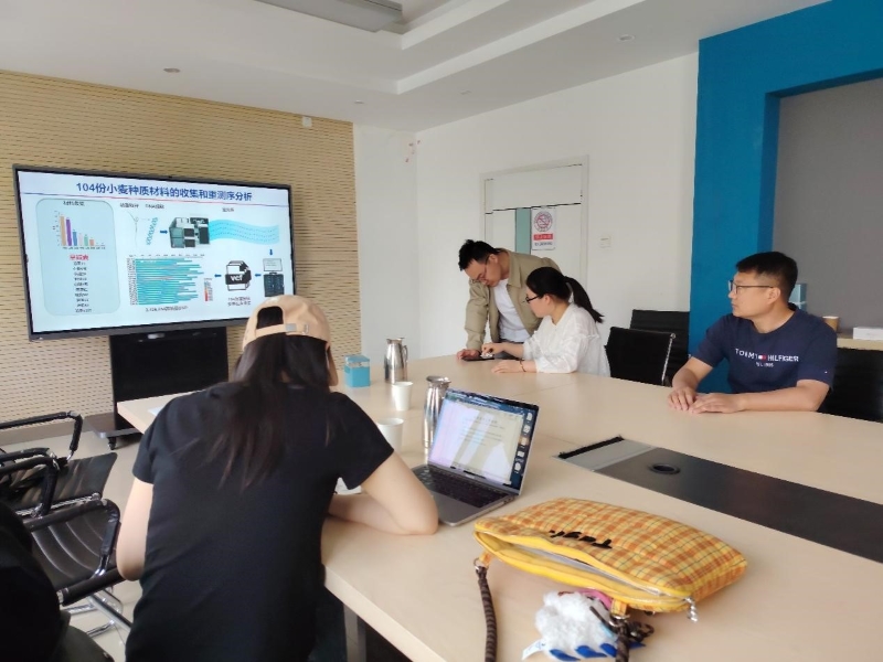 4月16日,团队前往中国科学院遗传与发育生物学研究所农业资源研究中心,与王磊团队就GWAS测序分析及旱碱麦SNP液相芯片研发等课题展开交流。双方针对104个河北小麦品种的GWAS结果应用进行了深入探讨,并实地参观了实验室,进一步了解了该技术在小麦耐盐碱遗传育种中的应用潜力。