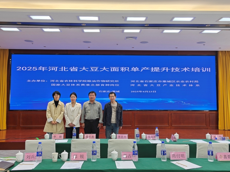 为深入贯彻落实国家粮食安全战略和关于大豆单产提升行动的部署,近日于石家庄藁城区召开2025年河北省大豆大面积单产提升技术培训会。我院经作所曹金锋研究员、胡铁欢研究员以及团队成员朱晓萍、崔蕊参加本次会议。
