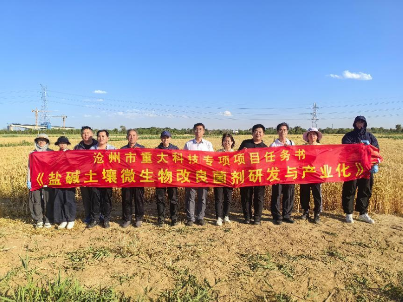 2025年6月3日,“盐碱土壤微生物改良菌剂研发与产业化”项目团队邀请中国科学院巨兆强教授、河北农业大学彭正萍教授、河北科技大学黄亚丽教授等行业权威专家组成测评组,在渤海新区黄骅市仙庄实验示范区,对盐碱土壤微生物改良菌剂应用效果进行现场检测与效果评估。专家组一行深入实验区核心地块,通过多点采样分析、作物产量测量等方式,系统验证微生物菌剂在改善土壤理化性质、提升作物产量等方面的实际成效,展现出良好的盐碱地改良应用潜力。