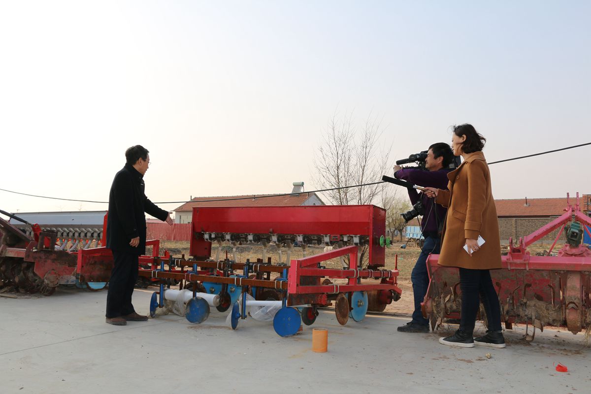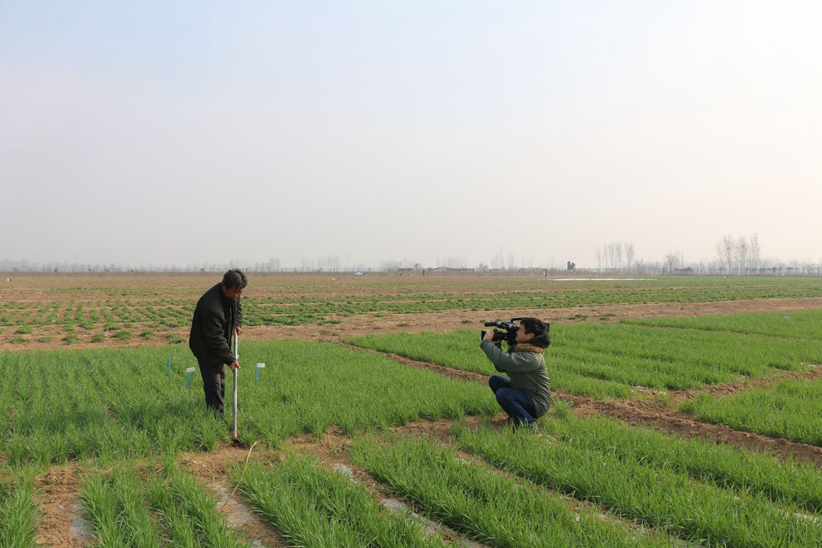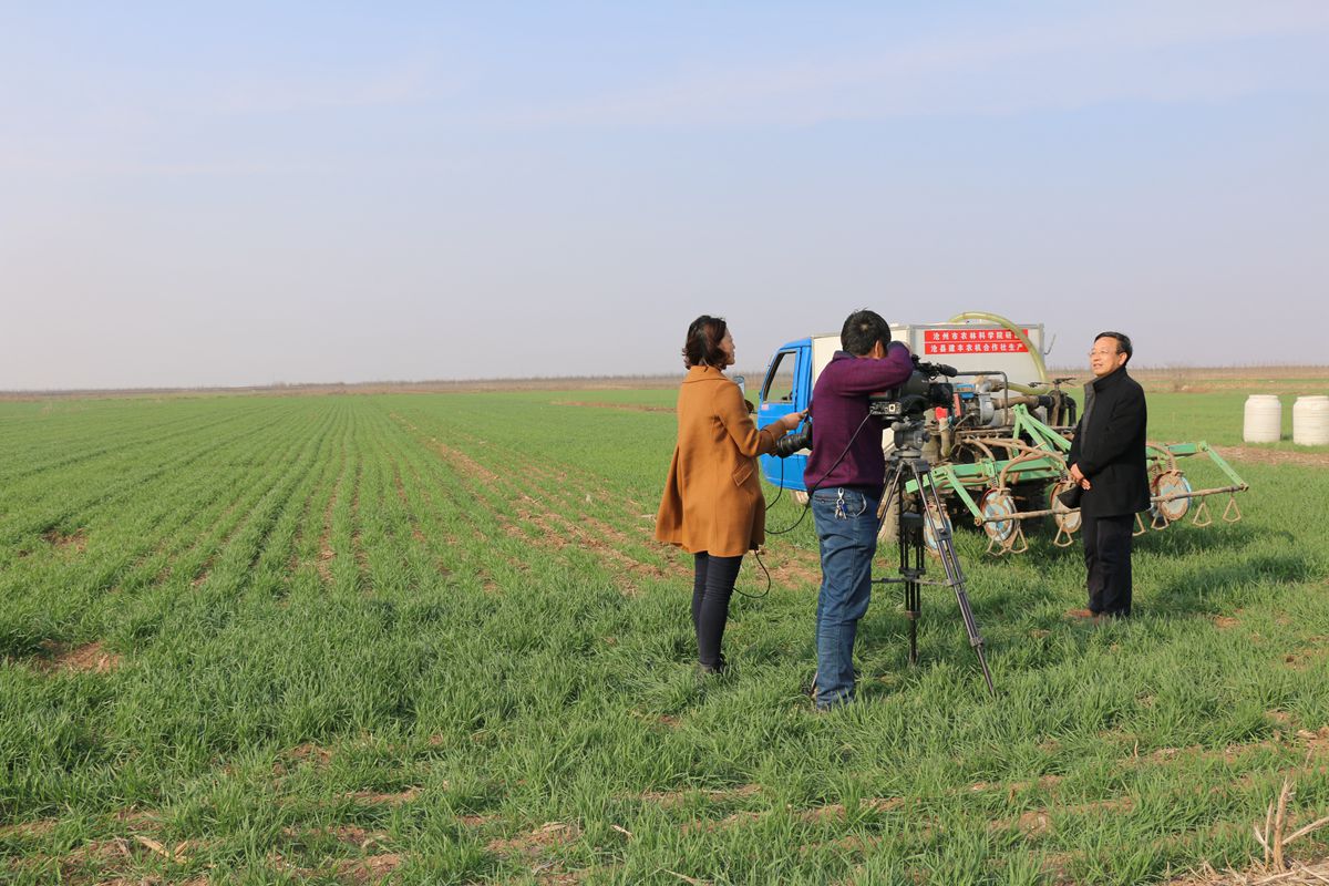 2017年3月28日至29日,河北电视台农民频道资深记者靳鑫平老师到沧州农科院“渤海粮仓”科技示范工程项目区现场拍摄冬小麦旱作种植技术。课题主持人阎旭东研究员在现场对近年来研发的春玉米、冬小麦旱作种植技术进行了详细介绍。靳老师以独特的视角、干练的摄像技术分别在沧州农科院前营试验站研发基地、黄骅市大寺村旱作小麦万亩示范区、沧县建丰农机合作社千亩示范区等地就冬小麦覆膜种植技术、春季追施水溶肥技术大区示范和施肥现场以及研发的农机具进行了拍摄。靳老师采用现场种植效果拍摄、当地农民采访、合作社采访、县市有关部门负责人员采访以及专家采访等多种形式,客观全面鲜活地展示了各项技术的种植效果和示范推广实施效果,并对该技术的实用性、可操作性给予了充分肯定。