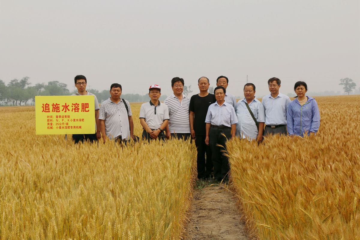 2017年5月30日,沧州市科技局组织对e77乐彩承担的《渤海粮仓科技示范工程—低平原雨养旱作区增产增效技术模式研究与示范》课题在黄骅市建立的“旱作冬小麦春季追施水溶肥技术”示范田进行了田间检测。由小麦栽培专家中国农业科学院赵广才研究员任组长的专家组进行了现场检测。