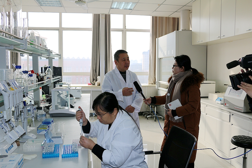 电视台记者还参观了我院植保实验室、抗旱耐盐碱实验室、分子育种实验室、林果实验室等,对主要课题负责人就其研究领域进行了单独采访。