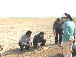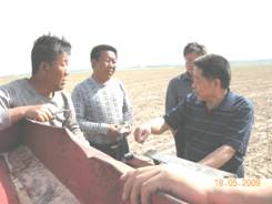 2009年5月18日清晨5点半,沧州大豆综合试验站站长卢思慧带领试验站团队成员,深入到河间市时村乡现场指导农民进行大豆播种。