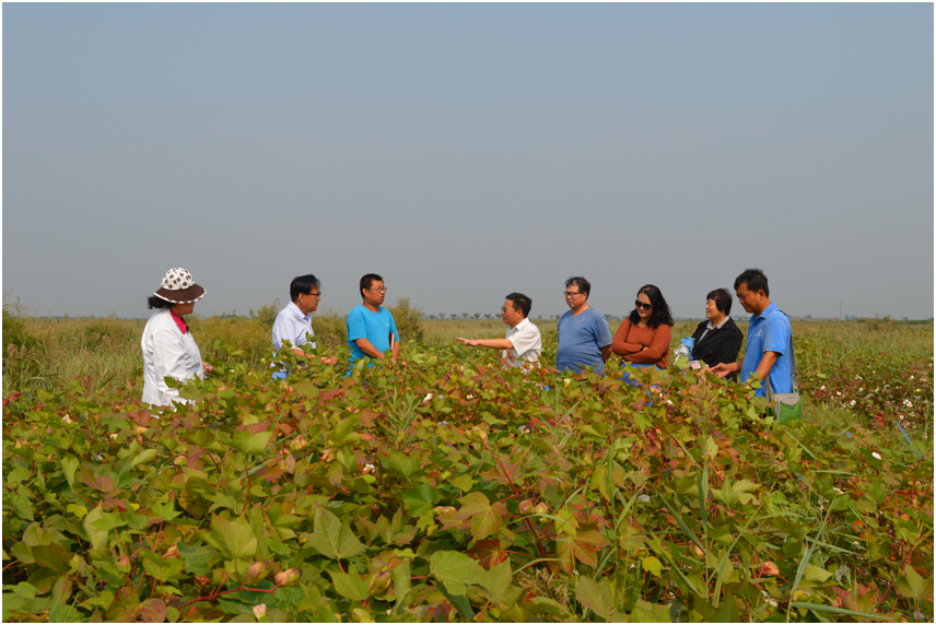 刘永平研究员带领来宾考察了前营试验站国家棉花区域试验,中棉所品比试验,海兴重度盐碱地棉花一膜双沟集雨增效种植技术试验和耐盐品种(系)适应性筛选试验;着重介绍了近年来农田高效研究所在项目承担、科技创新、团队建设、对外合作及人才引进与培养等方面取得的成就。