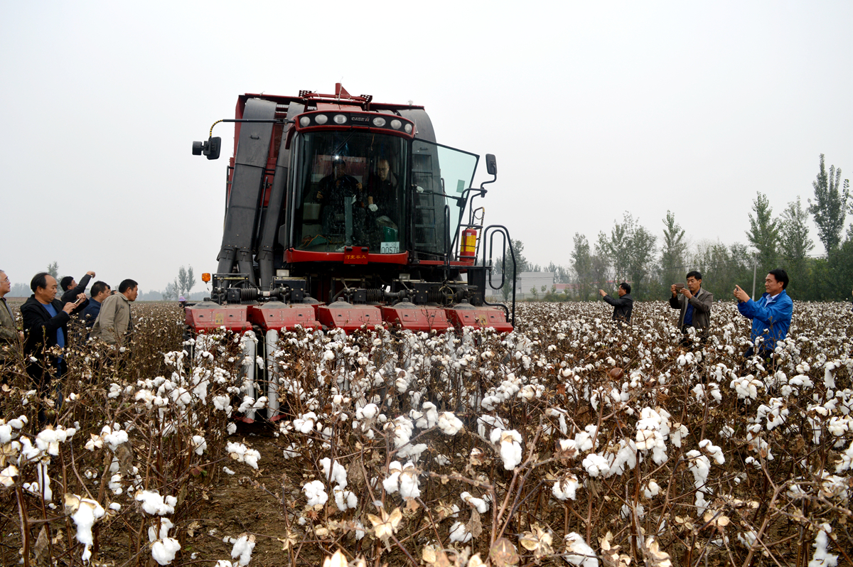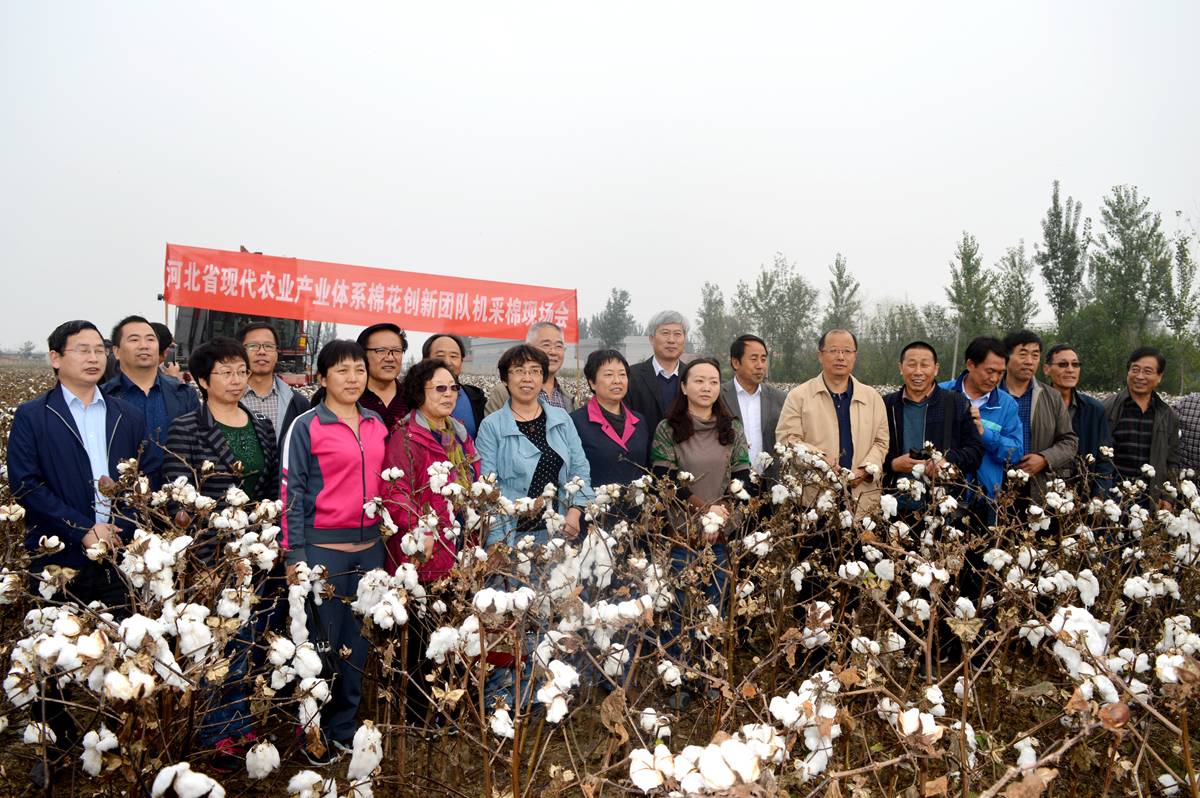 2017年10月14日,国家棉花产业技术体系、河北省棉花产业技术体系、省棉花协同创新中心在e77乐彩——东光千成纺织棉业有限公司示范基地联合举行棉花机械化采收现场会。参加单位有农业部、全国农业技术推广中心、中国农业大学、中国农科院棉花研究所、山东农业大学、扬州大学、河北省农业厅、河北农业大学、河北省农林科学院、省农机推广站、省旱作所、石家庄市农科院、邯郸市农科院、沧州市农科院、农牧局及东光县科技局、农牧局、找王镇政府等有关单位。