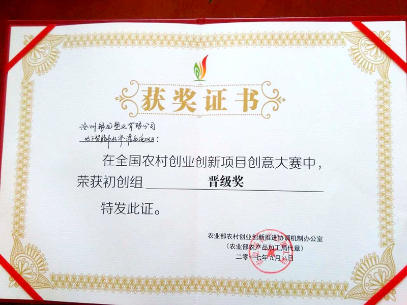 2017年9月6日至10日,在山东省东营市举办2017年全国农村创业创新项目创意大赛半决赛,由e77乐彩旱作技术研究创新团队技术合作支持、沧州银龙塑业有限公司生产的地下智能节水渗灌系统在此次比赛中以第一名的成绩进入11月份在苏州举行的全国总决赛。此次大赛是农业部主办,农业部农村创业创新机制协调办公室、农业部农村社会事业发展中心、中国农业电影电视制作中心、农民日报和山东省农业厅承办。大赛经过在全国县赛、市赛、省赛层层选拔,分为南方赛区和北方赛区进行全国半决赛。我院参加的地下智能节水渗灌系统项目以北方十四个省获得半决赛初创组第一名进入决赛。