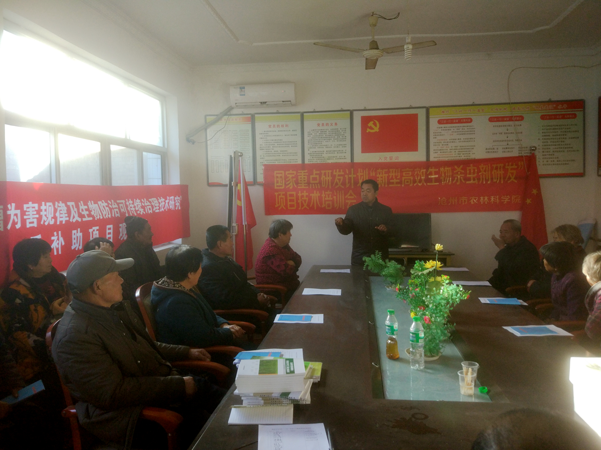 会上,王庆雷研究员介绍了地下害虫的防治方法与果树害虫的危害特点及最新发生趋势;为大家传播科学施肥,合理用药方法;大力推广以“绿色植保”为指导的科学防治病虫害方法。