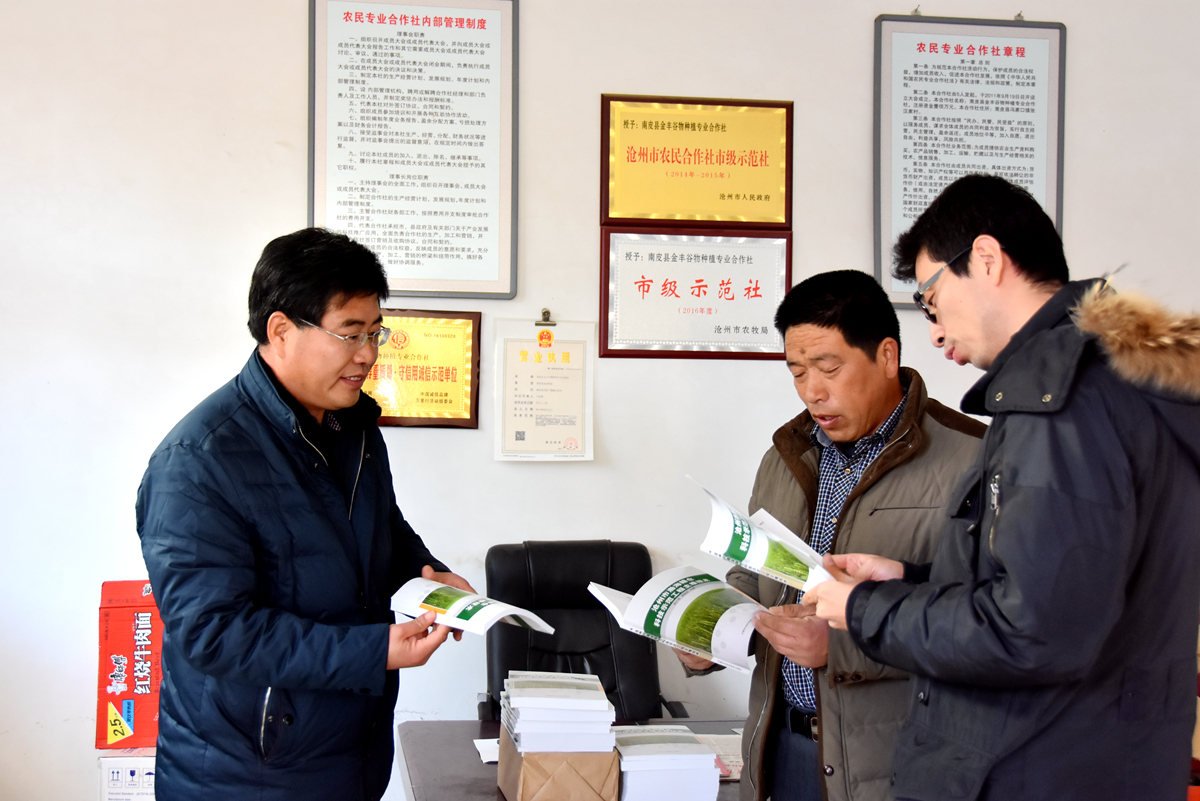 两位科技人员同合作社负责人进行了座谈,了解了张汉家村的总体情况、合作社的总体运营情况、合作社存在的主要问题及下一步的工作开展情况,并向合作社负责人宣讲了党的十九大报告精神以及与合作社发展密切相关的有关方针政策。同时,还为合作社送去了农科院的科研成果《沧州市渤海粮仓科技示范工程主推技术》40余册,对其今后开展种植提供了很好的技术参考和技术保障。两位科技人员还到田间进行了实地考察和技术指导。