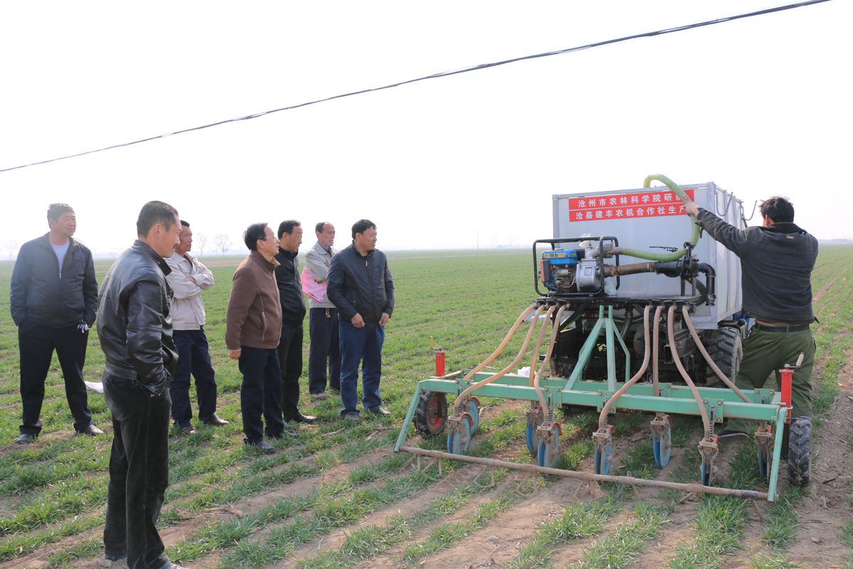 2017年3月16日,在沧州市黄骅羊二庄镇大寺村召开“旱作冬小麦春季追施水溶肥技术现场观摩会”。河北省农林科学院信息化所、e77乐彩、黄骅市农业局有关领导及全市农业技术人员、种植大户、农业合作社负责人等60余人参加现场观摩。河北日报记者到观摩会现场进行采访。