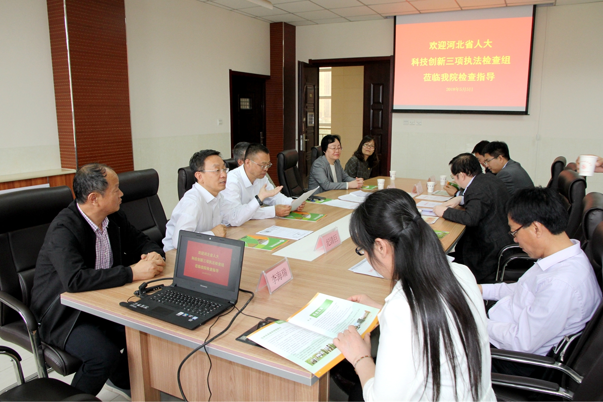 5月5日,省人大常委会委员、省人大教科文卫委员会主任委员、省人大常委会教科文卫工委主任杨金深带领执法检查组就贯彻落实《河北省专利条例》、《河北省促进科技成果转化条例》、《河北省科学技术进步条例》情况来我院进行执法检查。沧州市人大副主任李丽华、沧州市人大常委会教科文卫工作委员会主任刘伟、沧州市科技局副局长刘占峰陪同检查。