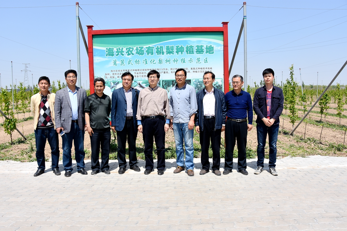 上午,许建锋副教授与有关人员参观考察了海兴农场有机梨、苹果、桃树、设施桃、葡萄种植基地,对海兴农场进行的有机梨生产和认证提出了一定的指导意见, 在海兴农场安排了杜梨砧木的耐盐试验。此外在泊头亚丰果品有限公司梨树种植基地进行梨树花期低温喷水熏烟防冻效果试验调查。同时对开展项目合作与岗站对接进行洽谈协商。
