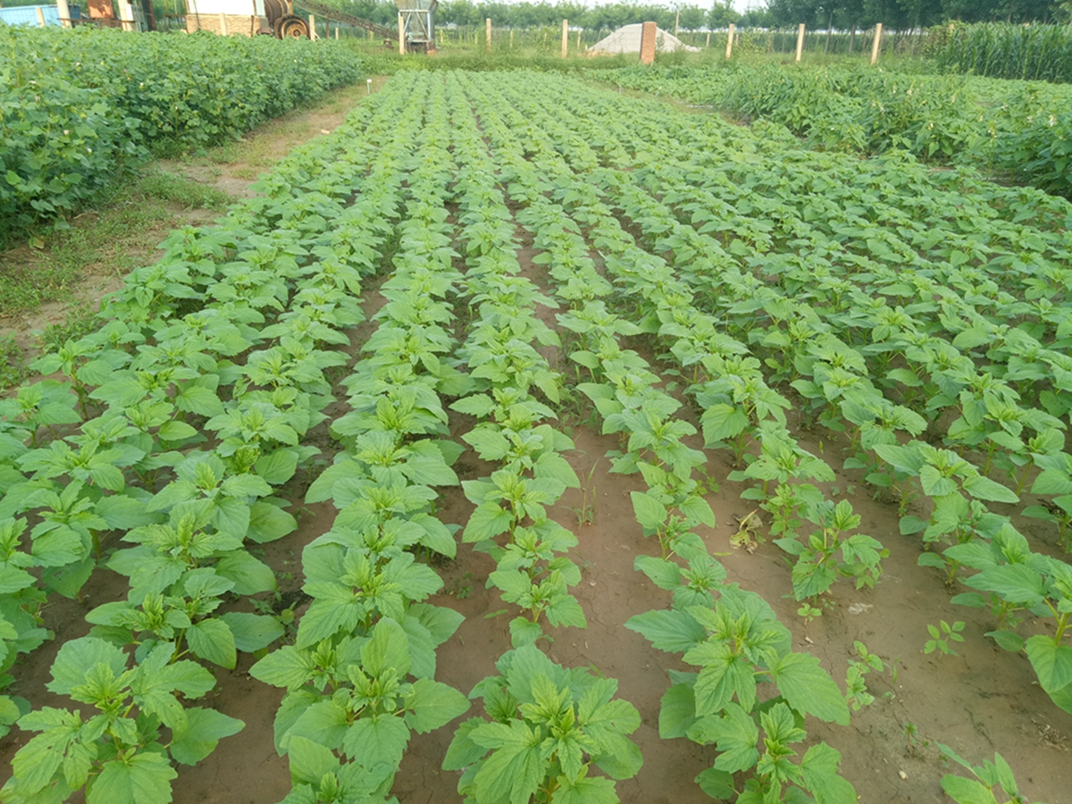 芝麻共引进了3个品种,现在还处于苗期,出苗整齐,长势良好。