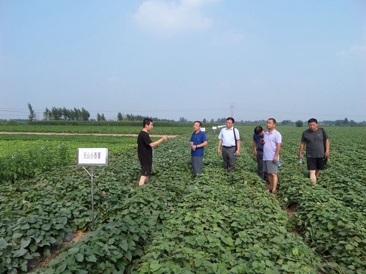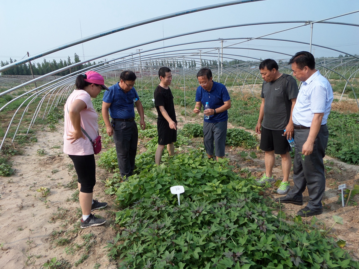 7月22日下午,农科院阎旭东副院长带领部分学术委员一行6人到河间市西九吉乡,对新兴学科——甘薯的试验情况进行检查和指导。