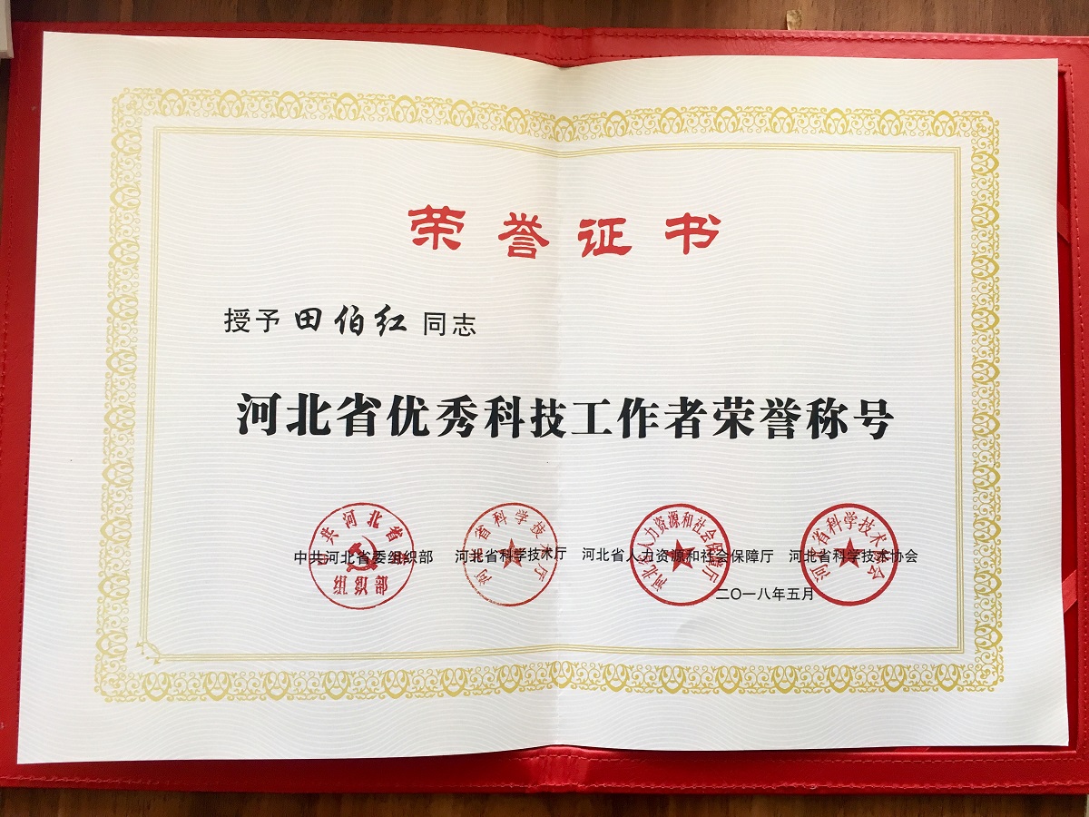 我院田伯红研究员荣获“河北省优秀科技工作者”称号
